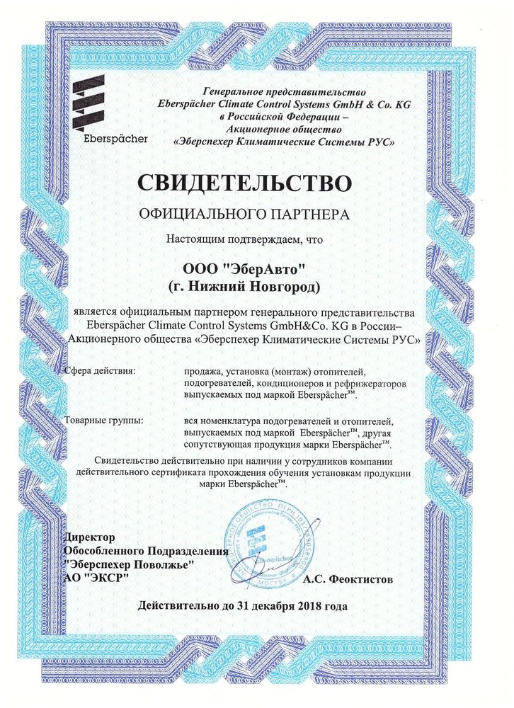 "Eber Auto - Нижний Новгород" - сертифицированный дилерский центр по работе с продукцией компании Eberspacher в Нижнем Новгороде. Дилерский центр "Eber Auto" - одна из немногих организаций, чей профиль связан с предпусковыми подогревателями автомобильных двигателей и автономными воздушными отопителями для транспортных средств.